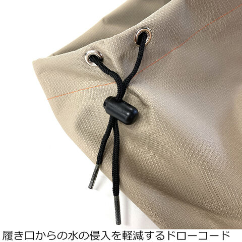 ウェダーの履き口は、コードストッパーで絞り込んでの調節が可能。