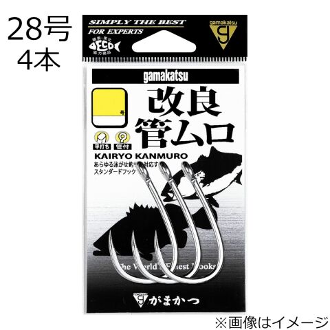 がまかつ 改良管ムロ 銀 28号 4本 Gamakatsu クエ針 大物針 バラ針 シングルフック カイリョウカンムロ28ゴウ 【返品種別A】