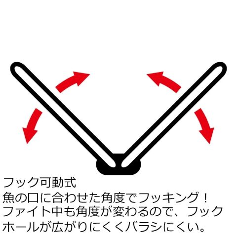 ファイト中も角度が変わるので、フックホールが広がりにくくバラシにくい。