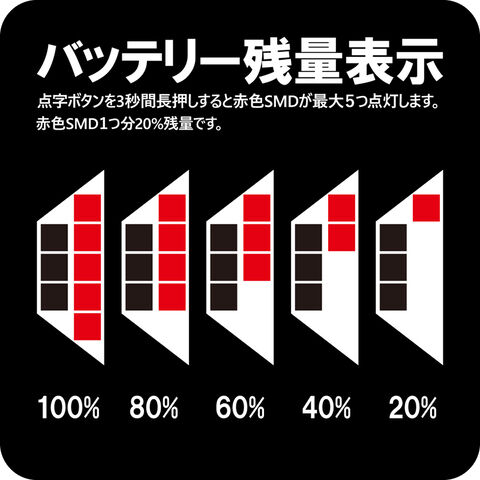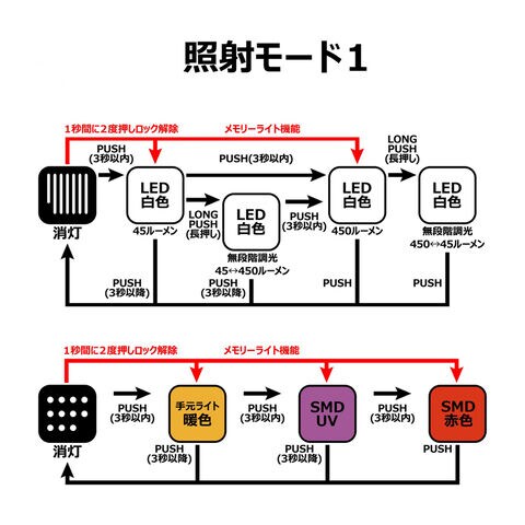 ◆白色LEDは、ボタン長押しで明るさを無段階調整可能。