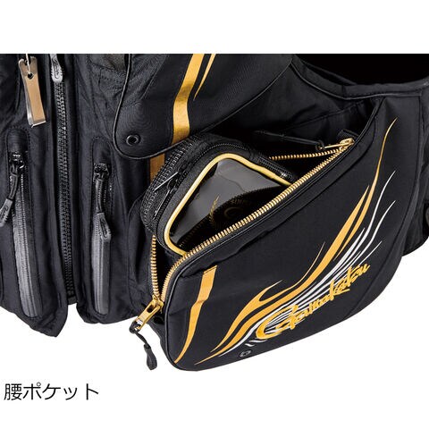 ◆面ファスナー付ポケットを胸と腰それぞれに配置し、使い終わった糸や鈎などの収納にも便利。