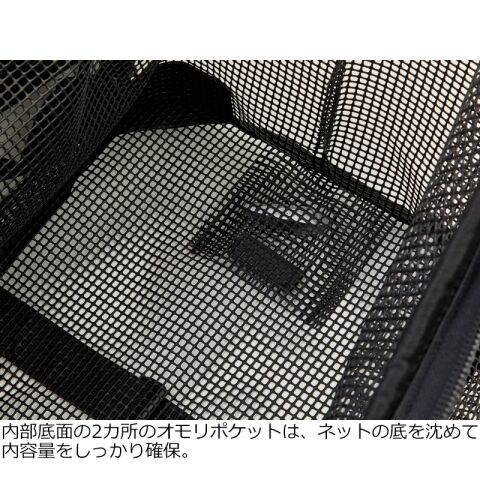 ◆内部のメッシュ素材は樹脂コーティングで内部の魚へのダメージを軽減。