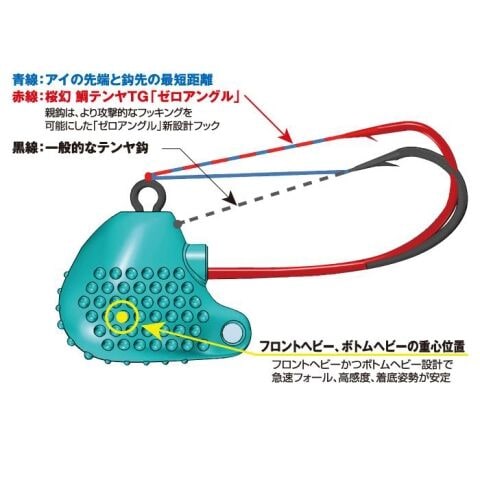 着底時にはテンヤ底面に設けられた「ボトムタッチバンパー」によりボトムでの接地面積を減らし、クリアな着底感を実現。