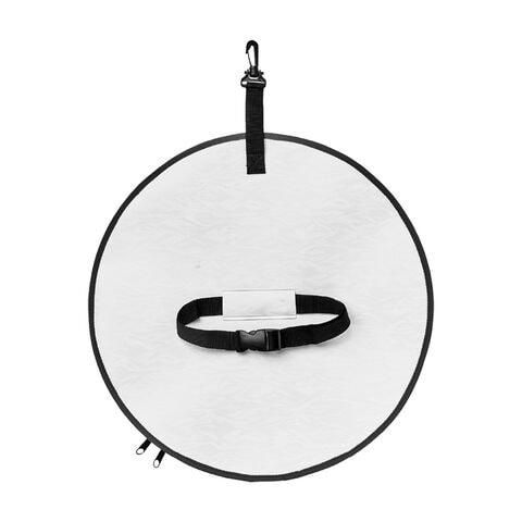◆背面にはロッドケースなどに取り付けやすいベルトを装備。タモカバーのぶらつきを防止。