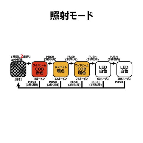 ◆クイックオフ機能で3秒以降に1回押せば消灯。