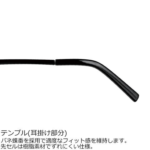 ◆テンプル(耳掛け部分)にはバネ蝶番を採用、適度なフィット感を維持します。先セルは樹脂素材でずれにくい仕様です。