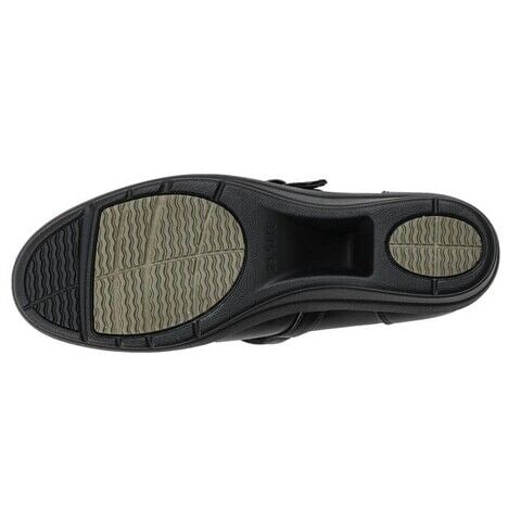 立ち仕事は、安定感が鍵に! 長さ調節可能なベルト付きウェッジソールパンプス。