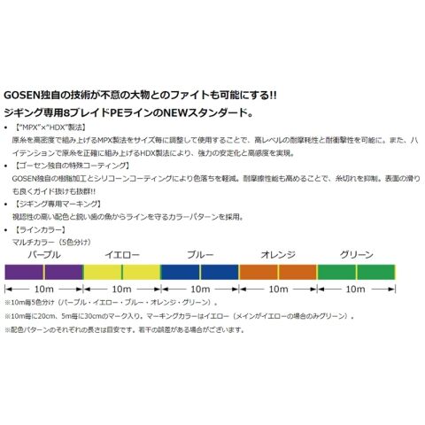 ◆GOSEN独自の技術が不意の大物とのファイトも可能にする! ! ジギング専用8ブレイドPEラインのNEWスタンダード。