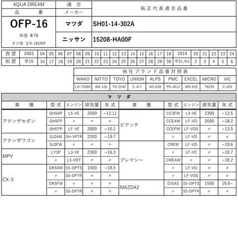 AQUA DREAM PLATINUM オイルフィルター マツダ・ニッサン車用 アクアドリーム AD-OFP-16 【返品種別A】のレビュー