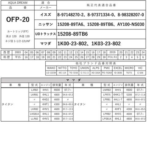 AQUA DREAM PLATINUM オイルフィルター イスズ・ニッサン・UDトラックス・マツダ車用(代表純正番号:8-97148270-2等) アクアドリーム AD-OFP-20 【返品種別B】
