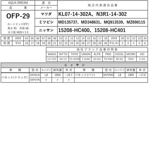 AQUA DREAM PLATINUM オイルフィルター マツダ・ニッサン・ミツビシ車用(代表純正番号:KL07-14-302A等) アクアドリーム AD-OFP-29 【返品種別A】