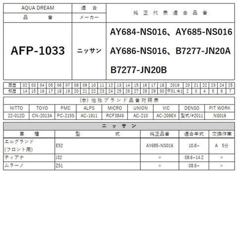 エルグランド(フロント用):E52(2010.08~) AY685-NS016 A:5分