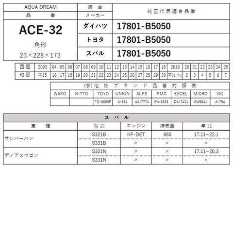 AQUA DREAM PLATINUM エアフィルター ダイハツ・トヨタ・スバル車用 (純正品番:17801-B5050) アクアドリーム AD-ACE-32 【返品種別A】のレビュー