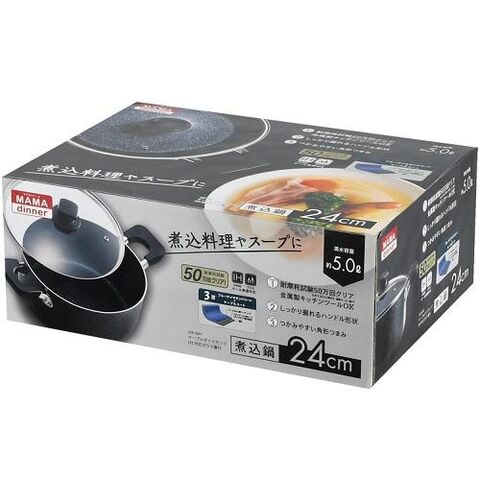 パール金属 ママディナーα マーブルダイヤモンドIH対応ガラス蓋付煮込鍋24cm(HB-589) HB-5897 マニコミナベ24CM 【返品種別A】