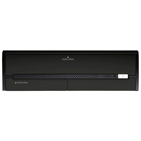 5.25インチと3.5インチのドライブベイを各1で装備しており、光学ドライブやメモリーカードスロットなど、外部ドライブをフロントに設置できます(外部ドライブおよびI/Oポートは、フロントパネルを開くと現れます)。また、シャドウベイは3.5インチを2つ備えています。