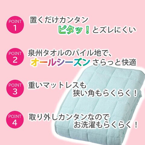 ◆敷きパッドのゴムの取り付けすらめんどくさい方へおすすめの「裏面にすべり止め付き」の敷きパッドになります。
