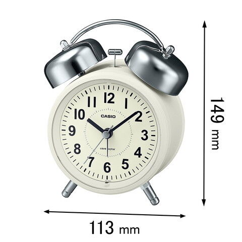 電波受信モデルなので時刻合わせの手間もなく、時刻アラームは、止めてもまた鳴るスヌーズ機能や大音量のベル音アラームを搭載。