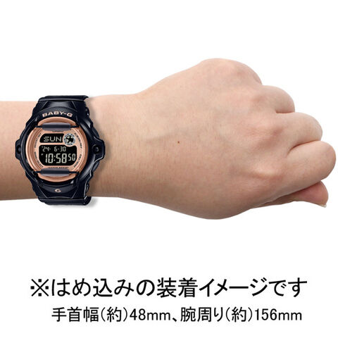 アクティブな女性のためのカジュアルウオッチBABY-Gから、コンパクトで丸いフォルムのボディに耐衝撃性を実現するフロントプロテクターを搭載したBG-169シリーズです。