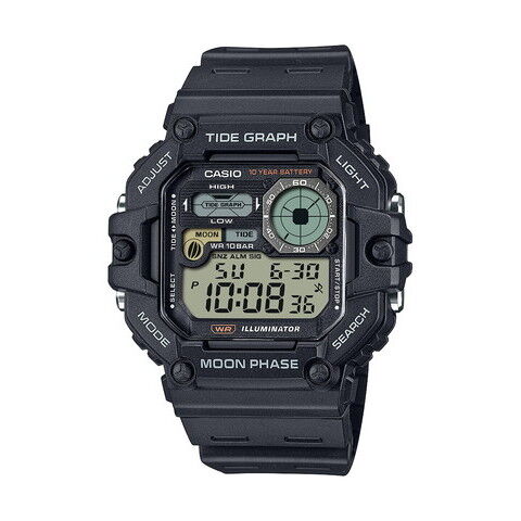 ムーンデータ、タイドグラフ、10気圧防水、10年電池寿命、LEDバックライトなど、アクティブシーンで役立つ機能を搭載しています。