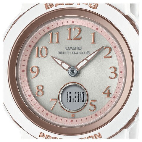 BGA-2900AFは、スリムなデザインが特徴であり、時刻を確認しやすいアラビックインデックスを施したダイアルデザインを採用しています。