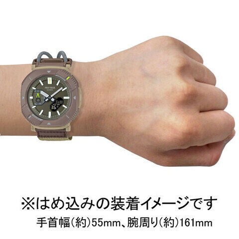 ケース、バンドなどの主な樹脂パーツには環境負荷の低減が期待されるバイオマスプラスチック樹脂を採用し軽量化を図ることでライトでコンフォートなアウトドアスタイルにマッチするモデルに仕上げました。
