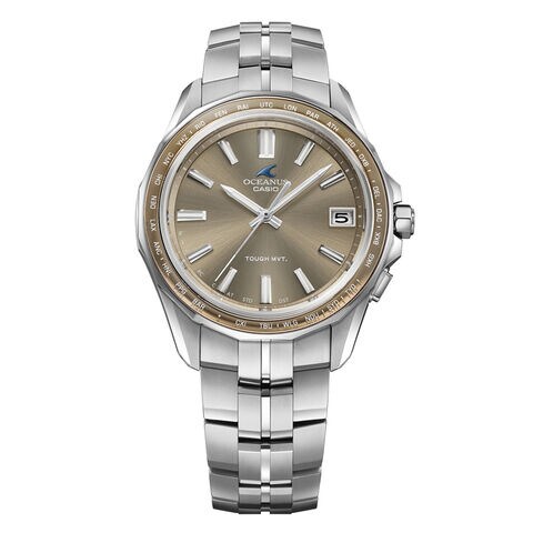 Manta OCW-S400A-5AJFとOCW-S40-5AJFのペアは、女性に好まれるペールベージュをOCEANUSで初めて採用。ベゼル上のサファイアガラスリングと文字板にペールベージュ蒸着を施しています。