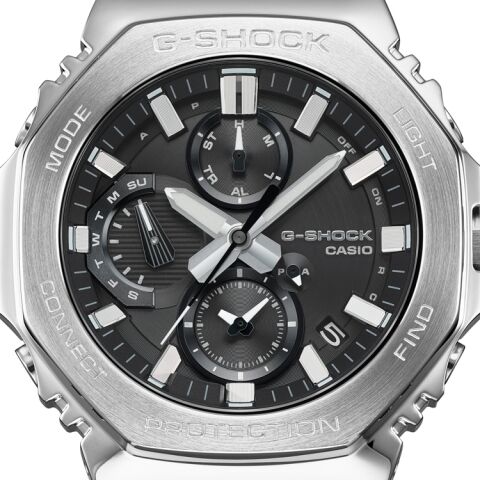 G-SHOCK初代モデル“DW-5000C”のコンセプトを受け継いで開発されたアナログ「2100」シリーズのフルメタルクロノグラフです。