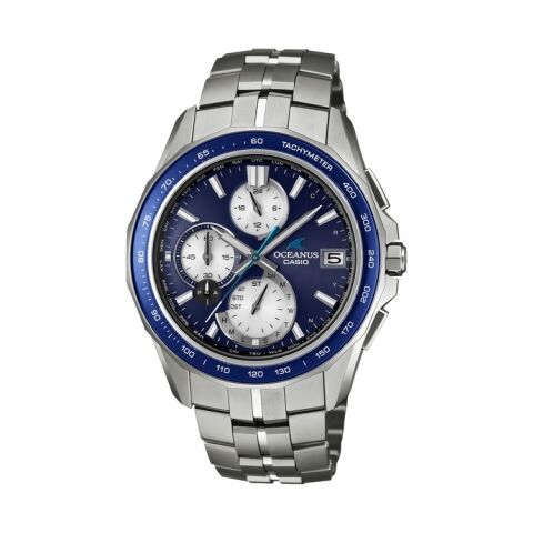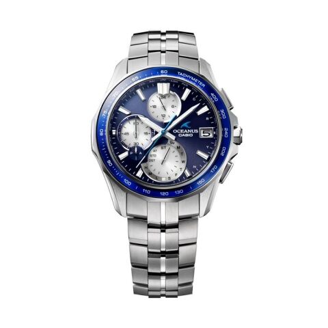 また、メインダイアルとベゼル上のサファイアには、トーンを合わせたブルー蒸着を採用し、ブルーとホワイトのバイカラーでOCEANUSらしい爽やかなモデルに仕上がっています。