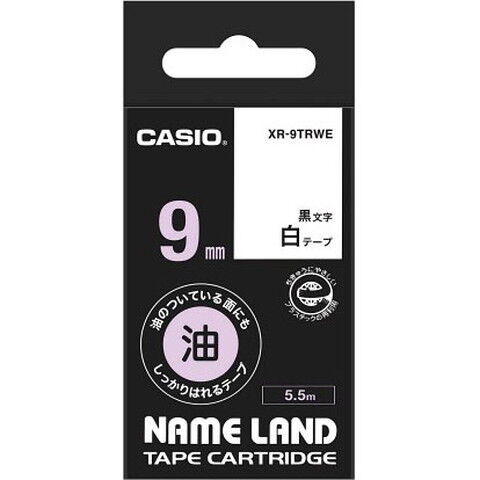 カシオ テープカートリッジ 油のついている面にもしっかりはれるテープ(9 幅/白テープ/黒文字) CASIO NAME LAND(ネームランド) XR-9TRWE 【返品種別A】