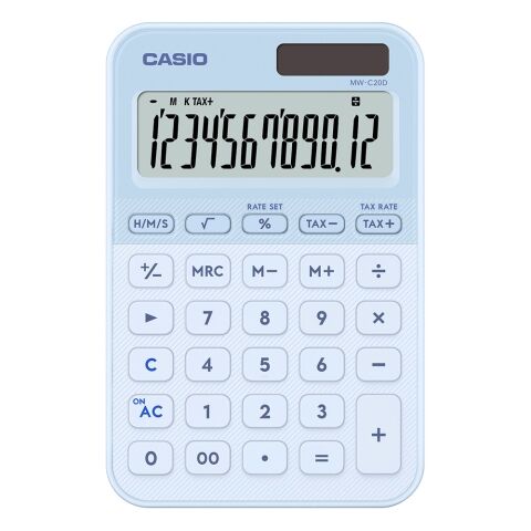 カシオ デザイン電卓(ライトブルー) カラフル電卓 ミニジャストタイプ MW-C20D-LB-N 【返品種別A】