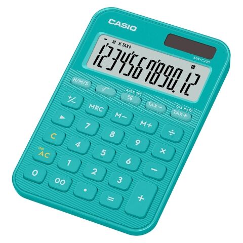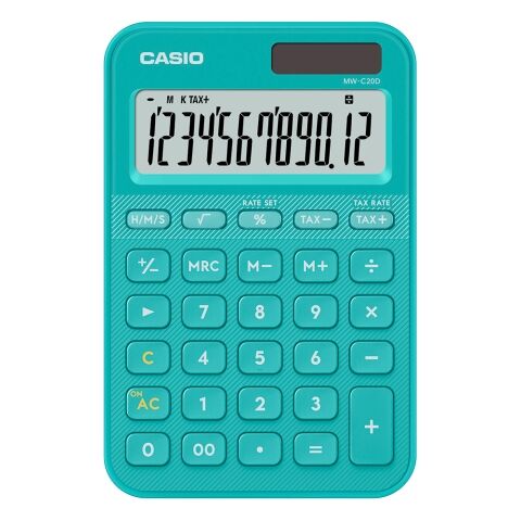 カシオ デザイン電卓(ターコイズ) カラフル電卓 ミニジャストタイプ MW-C20D-TU-N 【返品種別A】