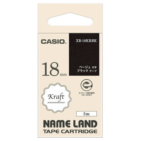 カシオ テープカートリッジ クラフトテープ(18 幅/ブラックテープ/ベージュ文字) CASIO NAME LAND(ネームランド) XR-18KRBK 【返品種別A】
