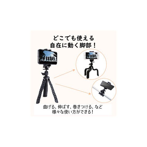 ◆持ち運びにも便利なコンパクトタイプ。変形自在で設置場所を選ばない、フレキシブルタイプのスマートフォン用三脚。