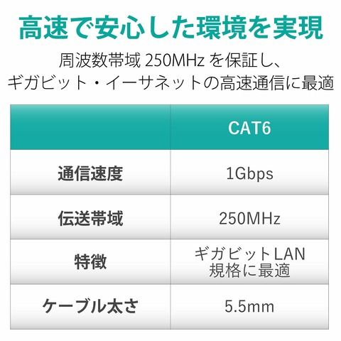 - 規格:Cat6対応(10BASE-T/100BASE-TX/1000BASE-T/1000BASE-TX対応)