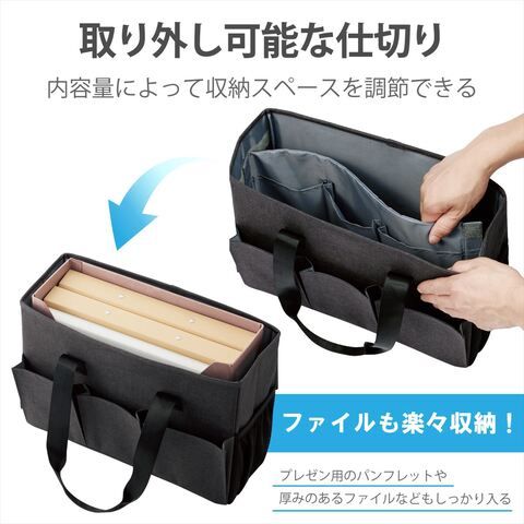 在宅ワークの仕事道具の管理や、社内移動の際の荷物運搬に便利な、大容量のボックストートバッグ