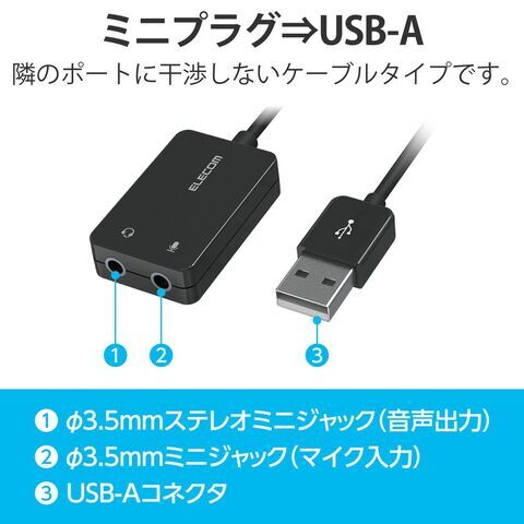 エレコム USBオーディオ変換アダプタ 0.15m(ブラック) USB-AADC02BK 【返品種別A】
