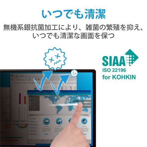 ◆移動中やオフィスでの周りからの視線をしっかりガード! タッチパネルにも対応した、抗菌タイプののぞき見防止フィルター。