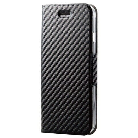 エレコム iPhone SE(第3世代/第2世代)/8/7用 手帳型レザーケース マグネット フラップ 耐衝撃 軽量 薄型 ワイヤレス充電可(カーボン調(ブラック)) PM-A22SPLFUCB 【返品種別A】