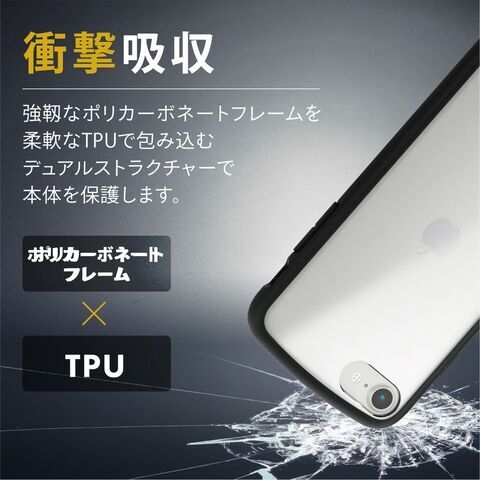 エレコム iPhone SE(第3世代/第2世代)/8/7用 ハイブリッドケース TOUGH SLIM LITE 耐衝撃 軽量 薄型 フレームカラー 背面クリア ワイヤレス充電可(ブラック) PM-A22STSLFCSBK 【返品種別A】