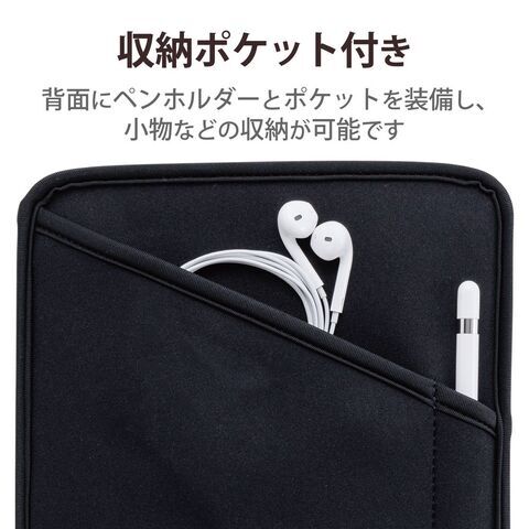 ◆本体背面にはペンホルダーとポケットを装備しているので、タッチペンや小物の収納も可能です。