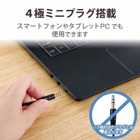 直径3.5mm4極ミニプラグを搭載し、タブレットPCでもそのまま使用できます。