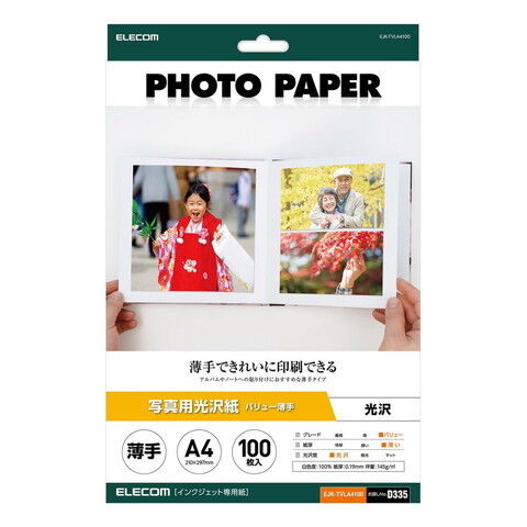エレコム 写真用紙 光沢 薄手 A4 100枚 EJK-TVLA4100 【返品種別A】