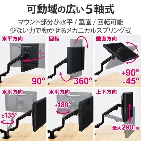 エレコム 17~32インチ対応 モニターアーム デュアル 2画面 メカニカルスプリング式 クランプ式 グロメット式 5軸(ブラック) DPA-DL05BK 【返品種別A】のレビュー