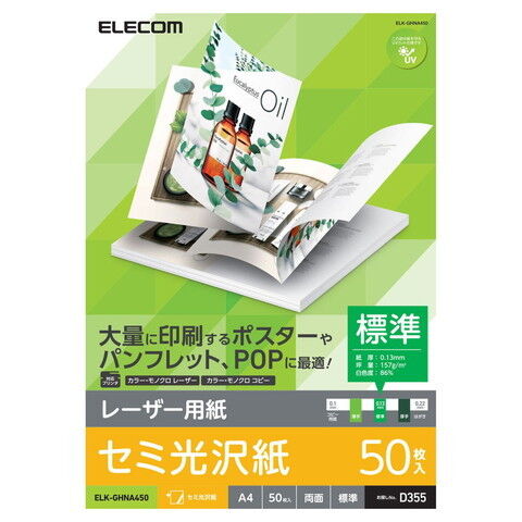 エレコム 【レーザープリンター用】 両面セミ光沢紙 [標準/A4/50枚] ELECOM ELK-GHNA450 【返品種別A】