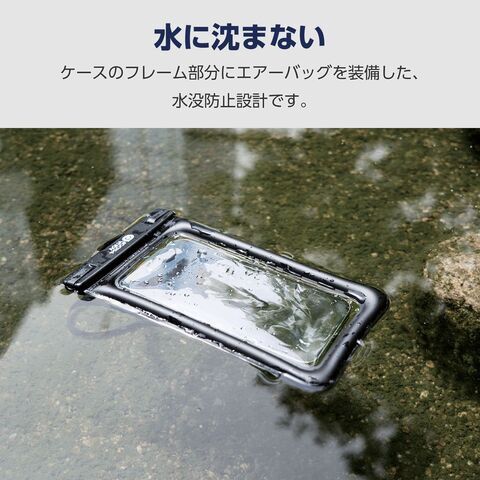 水中に沈み込まないように、ケースのフレーム部分にエアーバッグを装備した、水没防止設計です。
