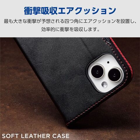 エレコム iPhone15(6.1inch/2眼)用 ケース レザー カバー 手帳型 マグネット フラップ 衝撃吸収 薄型 ストラップホール付 スタンド機能付 ステッチ カードケース機能付(ブラック) PM-A23APLFYBK 【返品種別A】のレビュー