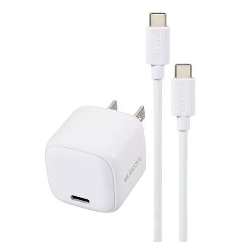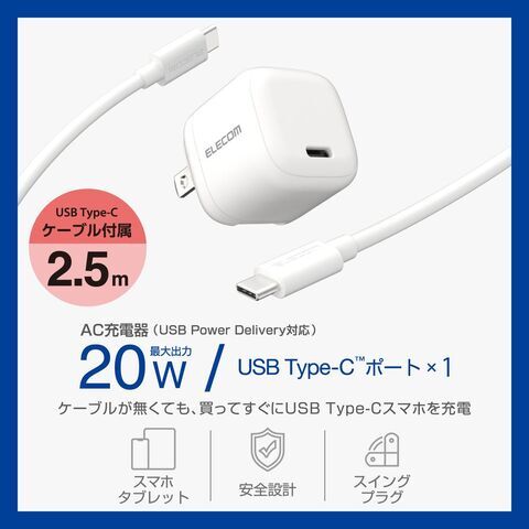 エレコム USB PD 20W AC充電器(Type-C×1) ケーブル付属 2.5m 折りたたみプラグ(ホワイト) MPA-ACCP7720WH 【返品種別A】