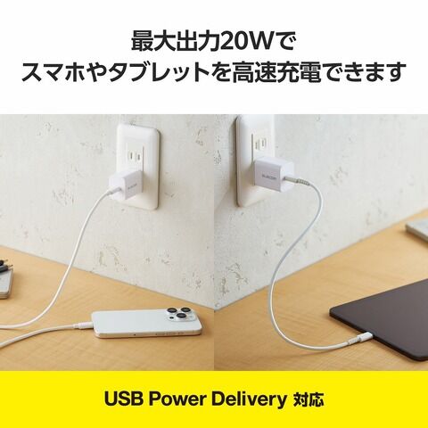 エレコム USB PD 20W AC充電器 Type-C×1 折りたたみプラグ(ホワイト) PSE適合 MPA-ACCP6820WH 【返品種別A】