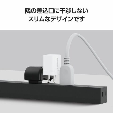 複数口があるコンセントに挿すとき、隣の差込口に干渉しないスリムなデザインです。