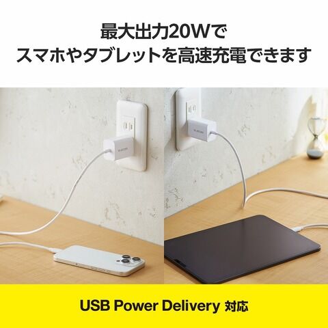 USB Power Deliveryに対応したUSB Type-Cプラグを搭載し、対応するスマートフォン、タブレットなどを充電できるUSB AC充電器です。